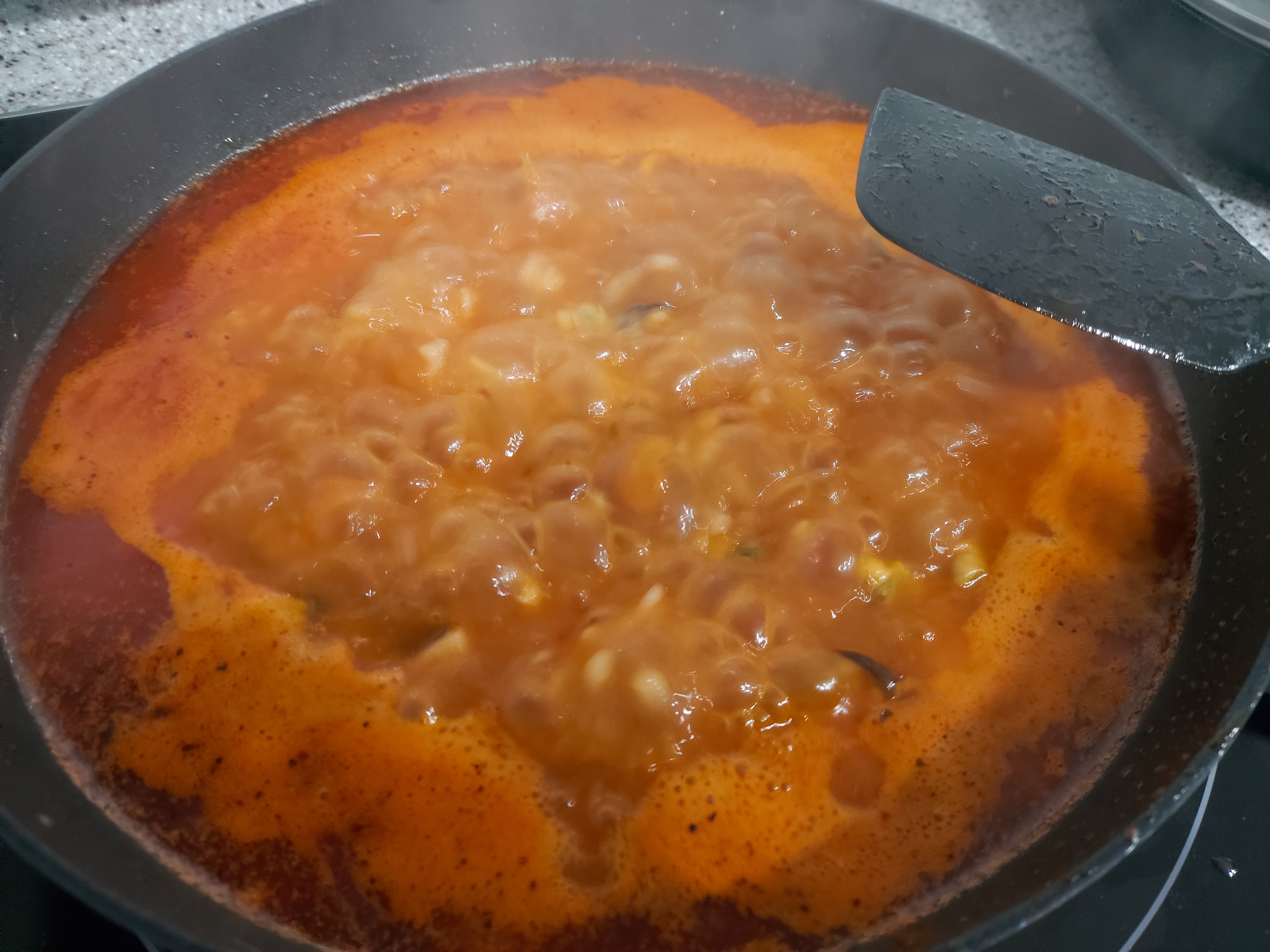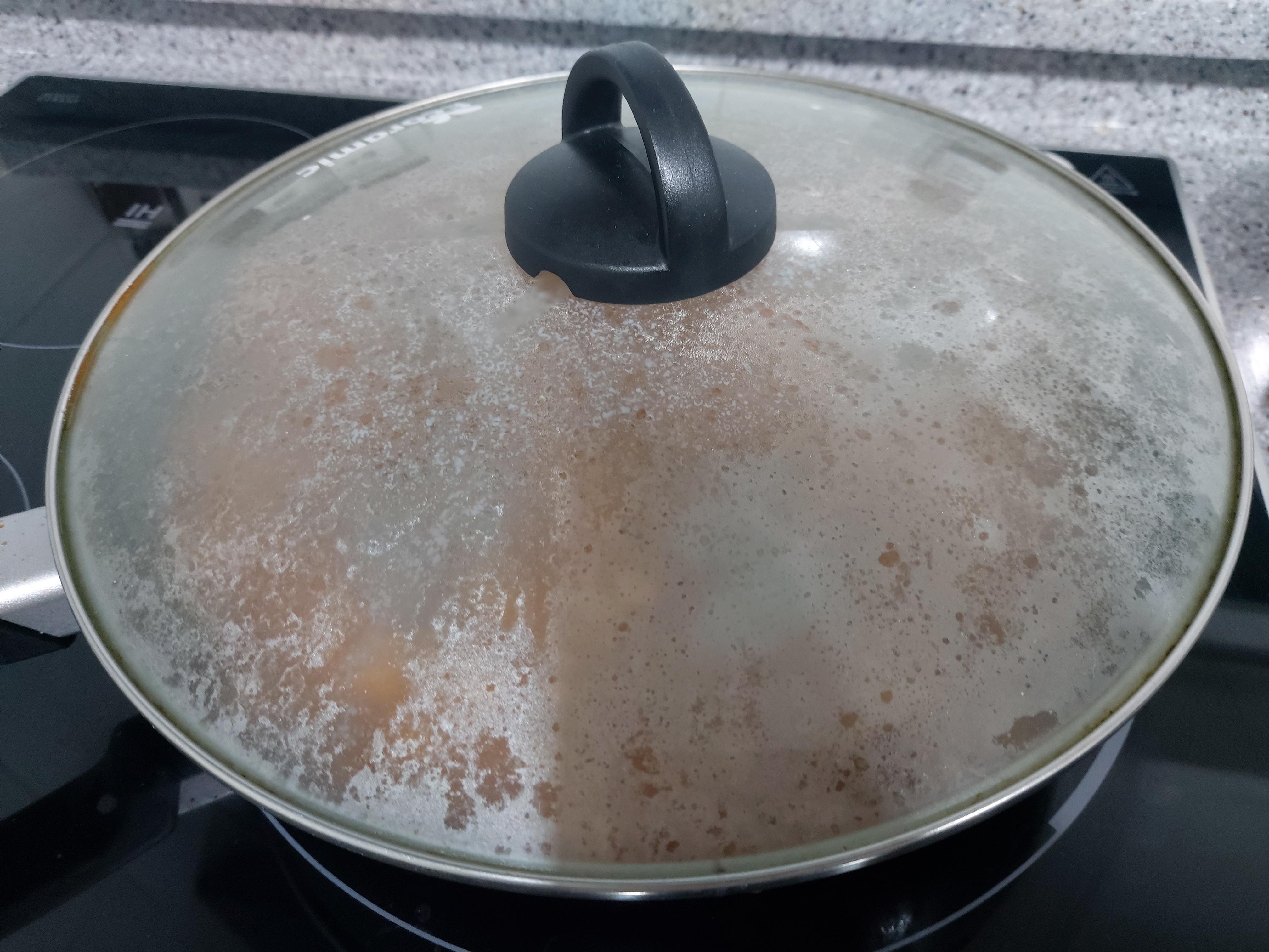 저도 팬이 타지 않을까 걱정이 앞섰는데, 물이 많아서 늘러붙지 않더라고요. 걱정하지 마시고 강한 불로 물을 졸여주세요.강한불에서 12분 타이머 맞추어 놓고 바글바글 끓이먄 신기하게 타지는 않고 물이 점점 줄어 듧니다.