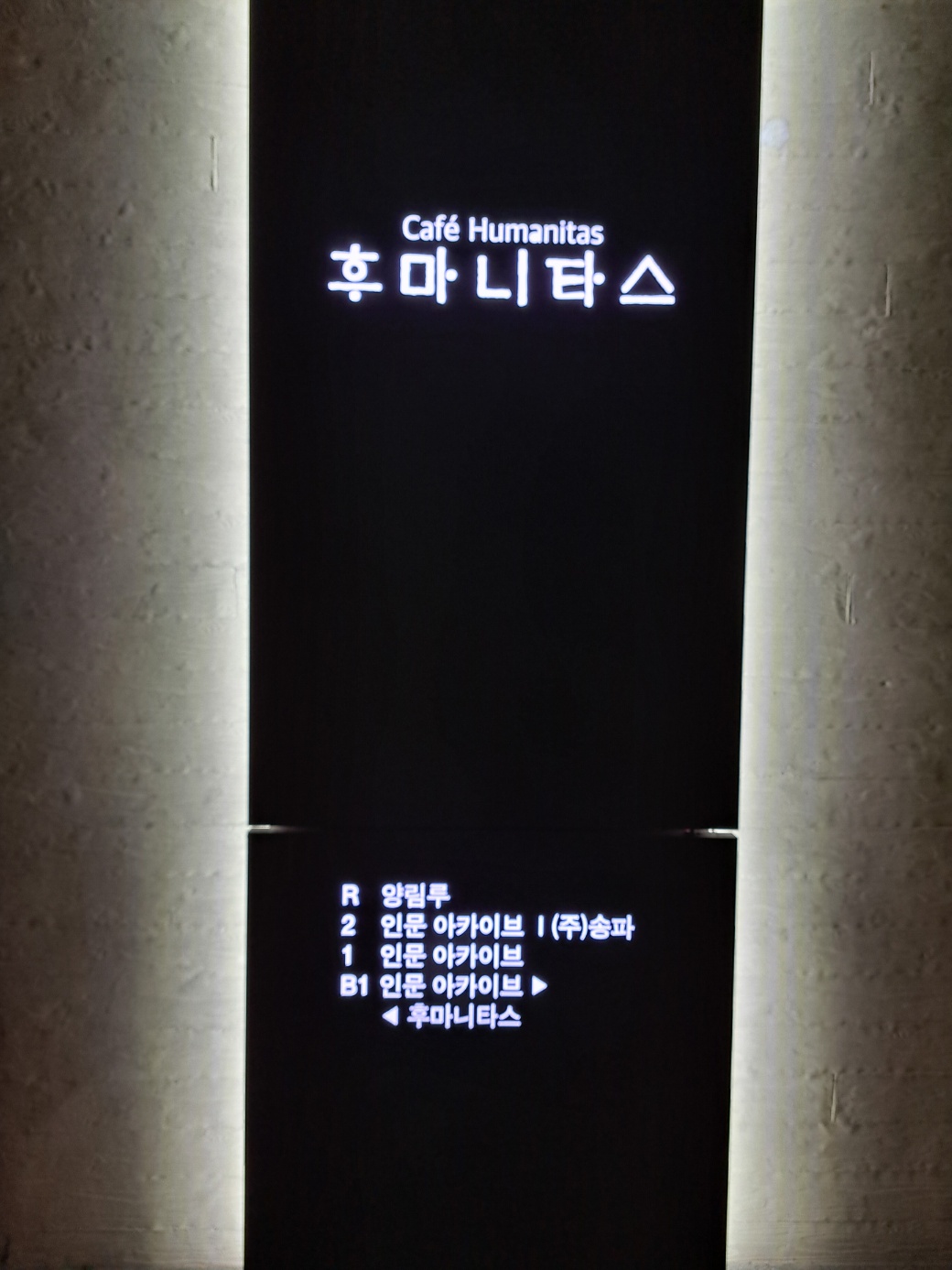 청주 후마니타스 카페 후마니타스는 B1에서 음료 & 인문아카이브(책 보는 공간) 를 시작으로