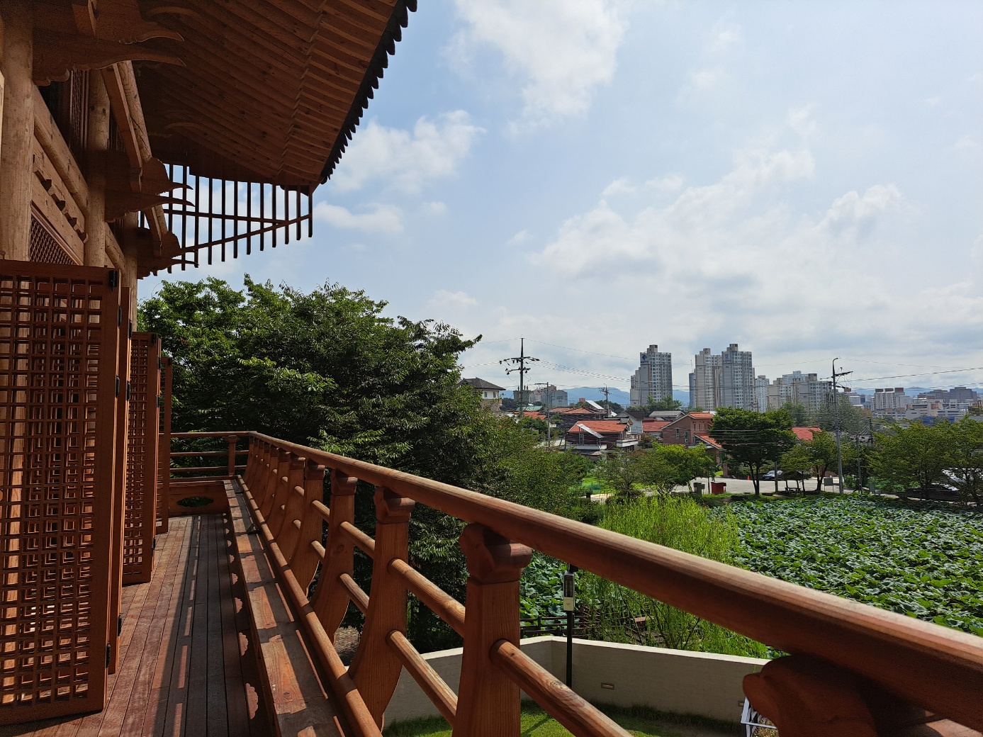 청주 후마니타스 야외 뿐만 아니라 실내에서도 연꽃 (저수지)를 이렇게 접하고 있어서 자연을 해치지 않으면서도
