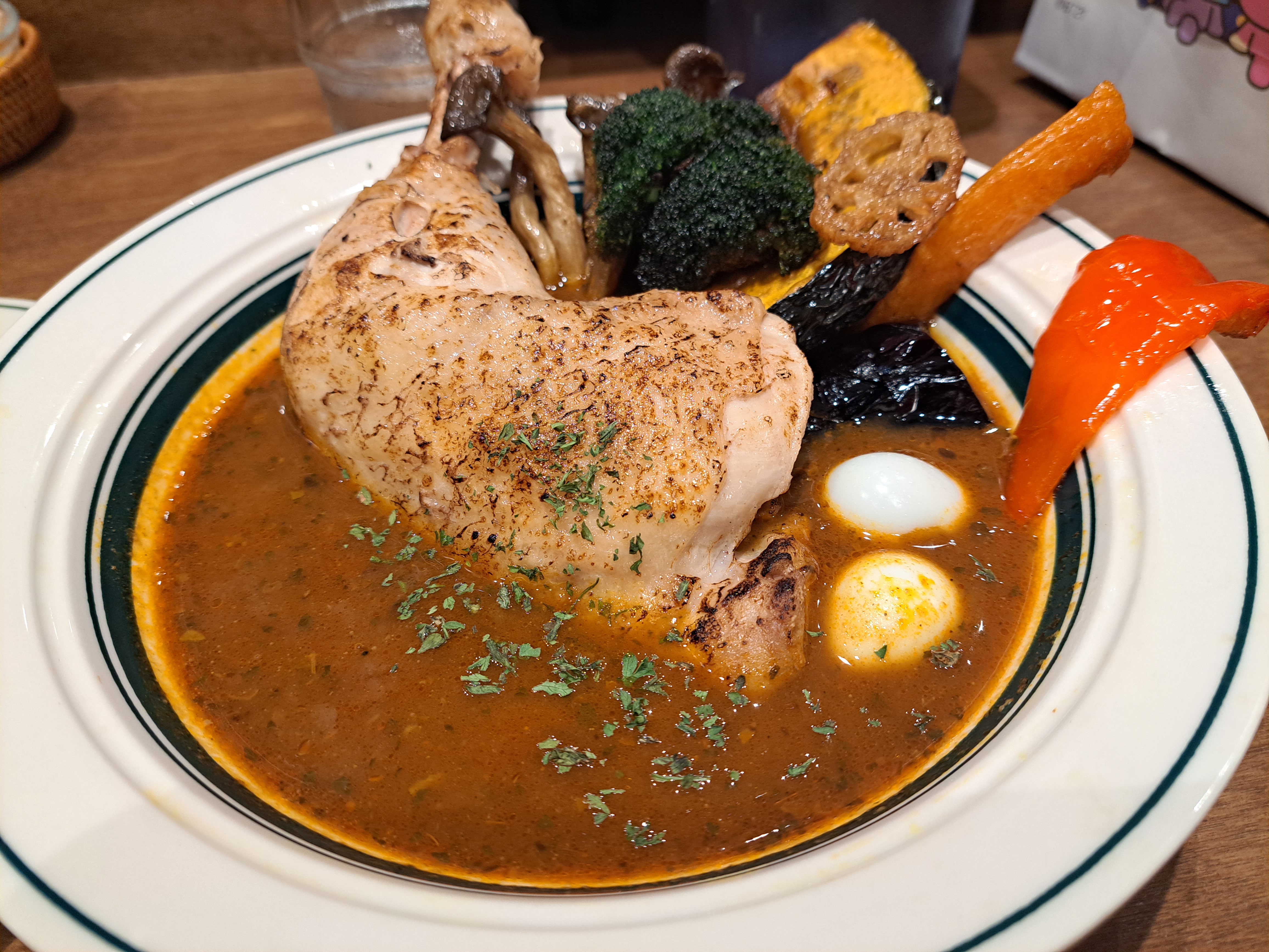 저는 넓적 다리가 올라간 치킨 수프커리를 주문했습니다.