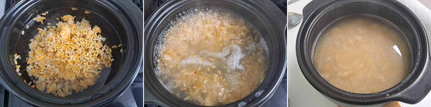 1. 찬물에 누룽지 또는 찬밥을 넣어 끓여줍니다. -> 초간단 누룽지 완성 !