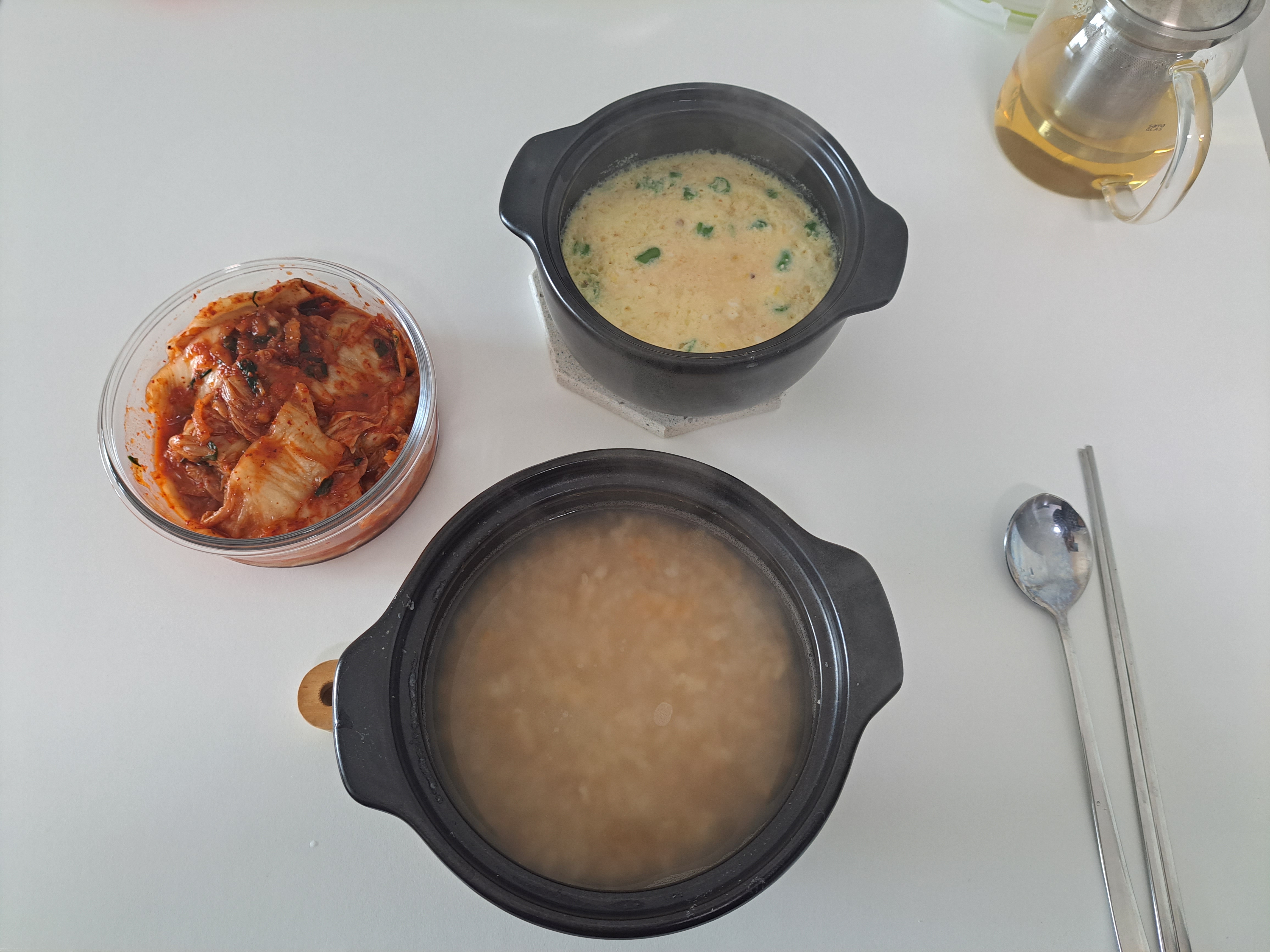 누룽지와 배추김치의 조합도 속이 편하면서, 부족한 단백질은 계란찜으로 챙길수도 있어서