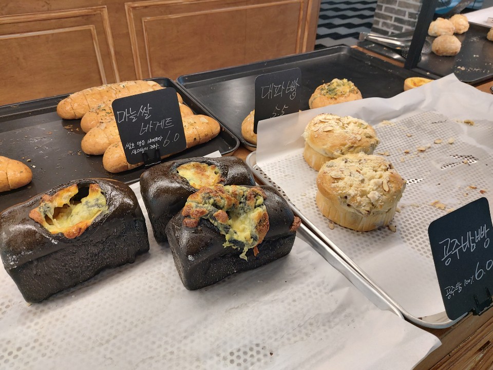 방동저수지 카페 - 오늘 제빵소 12 마늘쌀 바게트, 대파빵 공주특산품인 '밤' 을 넣어만든 공주밤빵도 있었습니다.