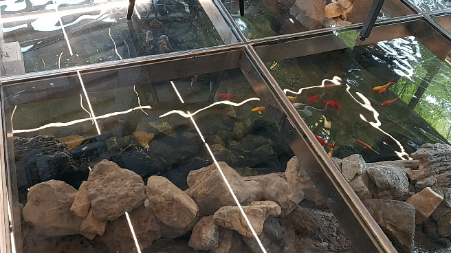 방동저수지 카페 - 오늘 제빵소 24 방동저수지 카페 - 오늘 제빵소 25 인상적 이였던 것은 건물이 커다란 계곡(?) 위에 지어진것 처럼 카페 일부 벽면 뿐만 아니라 바닥까지 통유리로 되어있어 물고기들이 지나다니는 걸 생생하게 눈으로 볼 수 있습니다.