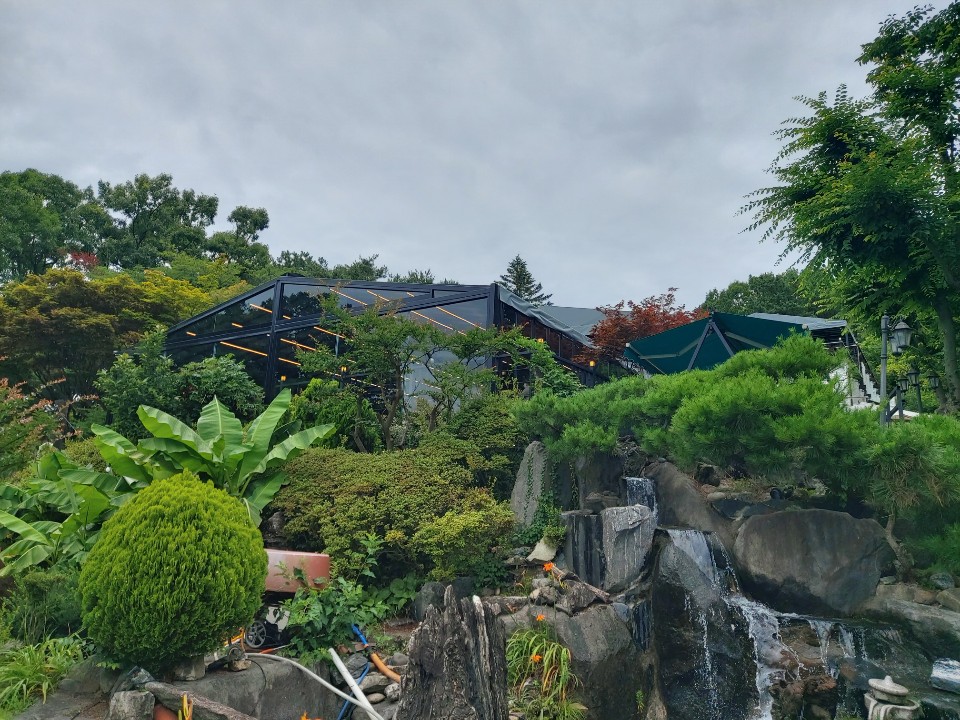 방동저수지 카페 - 오늘 제빵소 5 카페가 너무 커서 사진에 다 담지는 못했지만 카페 조경과 인공폭포,그리고 카페 뒷편으로 난 산책로까지 관리가 잘 되고 있었습니다.