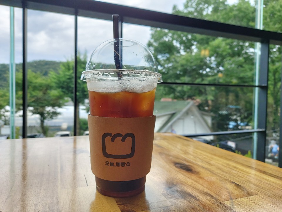 방동저수지 카페 - 오늘 제빵소 1 20년 7월 1일에 오픈을 해서 제가 갔을 땐 오픈행사로 아메리카노 1+1 이벤트를 하고 있었어요.