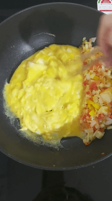 크래미 볶음밥 15 크래미 볶음밥 16 팬 한쪽에 계란물을 부어 주신 후,