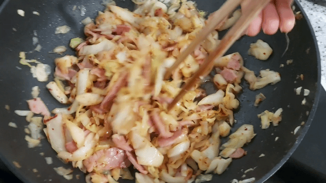 양배추를 기름에 볶았을 때,