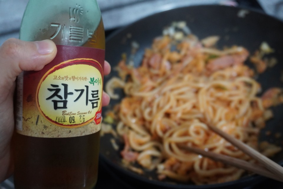 볶음우동 만들기 17 이제 마지막으로 참기름 반숟가락