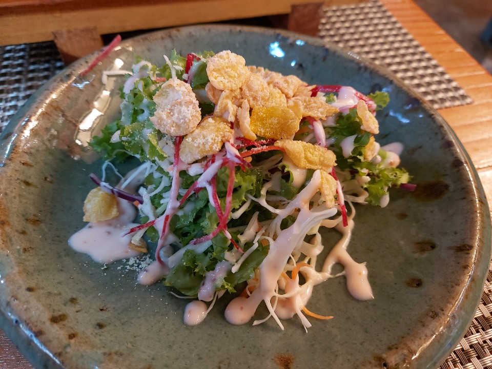 식전샐러드도 신선하고 위에 뿌려져있는 후레이크의 바삭한 식감이 잘 어울어져 이것도 별미네요!