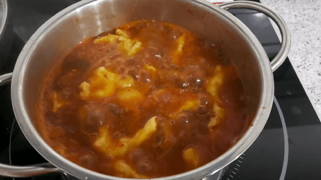 수제비를 넣고 오랫동안 끓이다가 랜덤으로 건저내어 익었다 싶으면