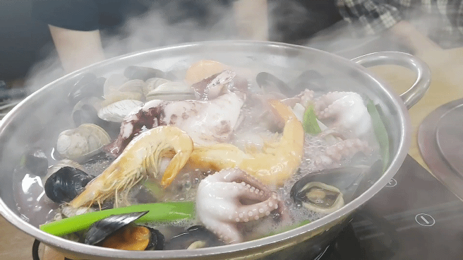 오징어, 홍합, 가리비(?), 새우를 생물로 넣고 끓여 국물이 정말 시원했어요.
