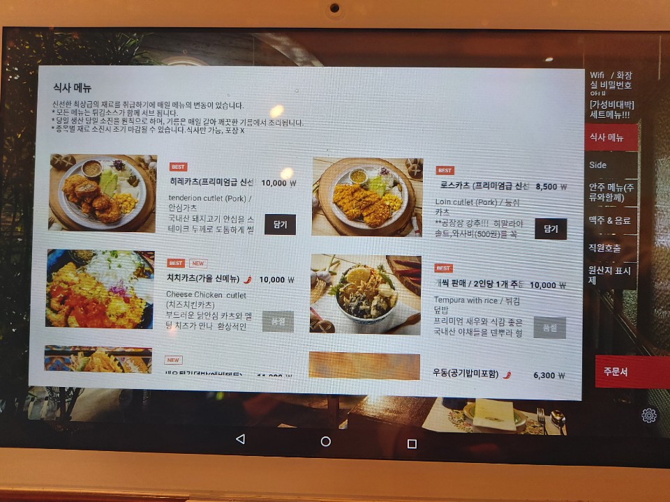 요즘 식당들은 이렇게 태블릿PC로 주문하는 곳이 많은 것 같더라고요.