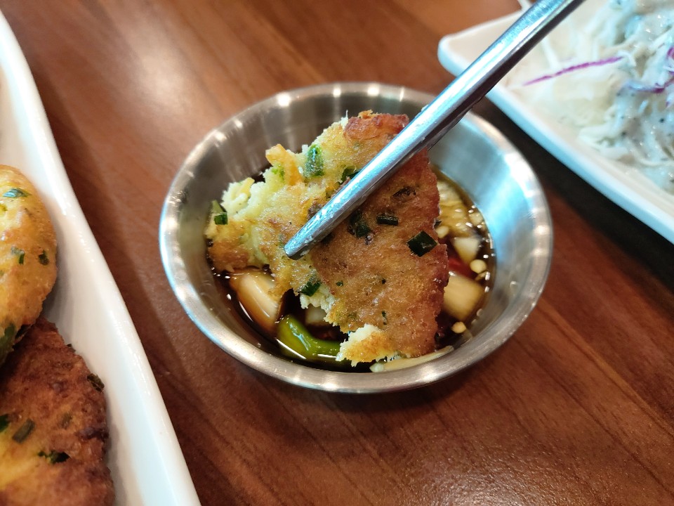 바삭한 콩비지전과 새콤한 간장이 느끼함을 싹 잡아주어 너무 조화가 좋았네요.