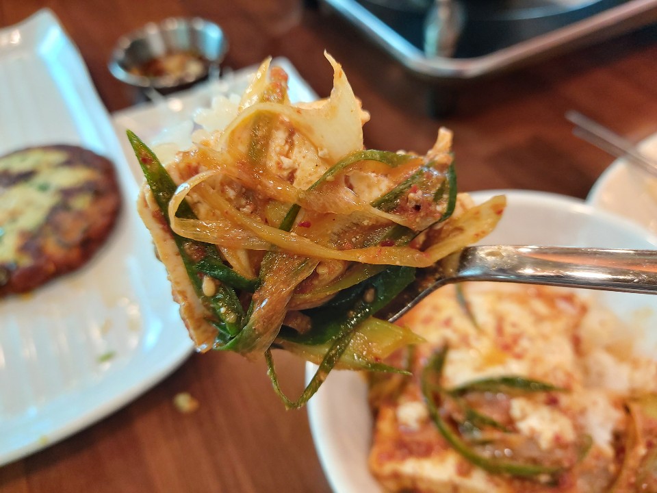 두부 자체도 고소하고 부들부들해서 맛있었지만, 양념장과 대파 듬뿍 퍼서