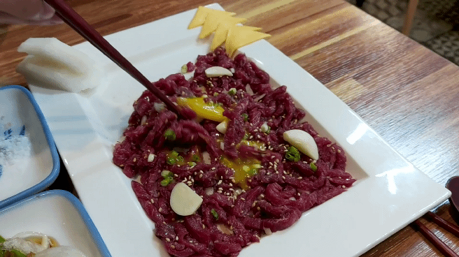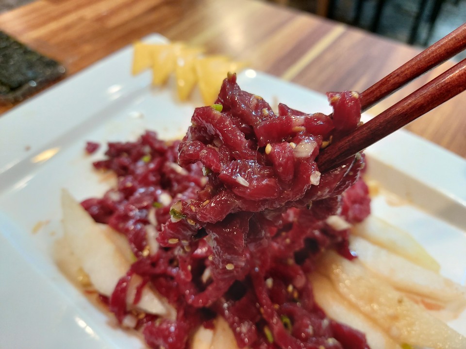 육회 색깔좀 보세요. 신선도가 장난이 아니에요!