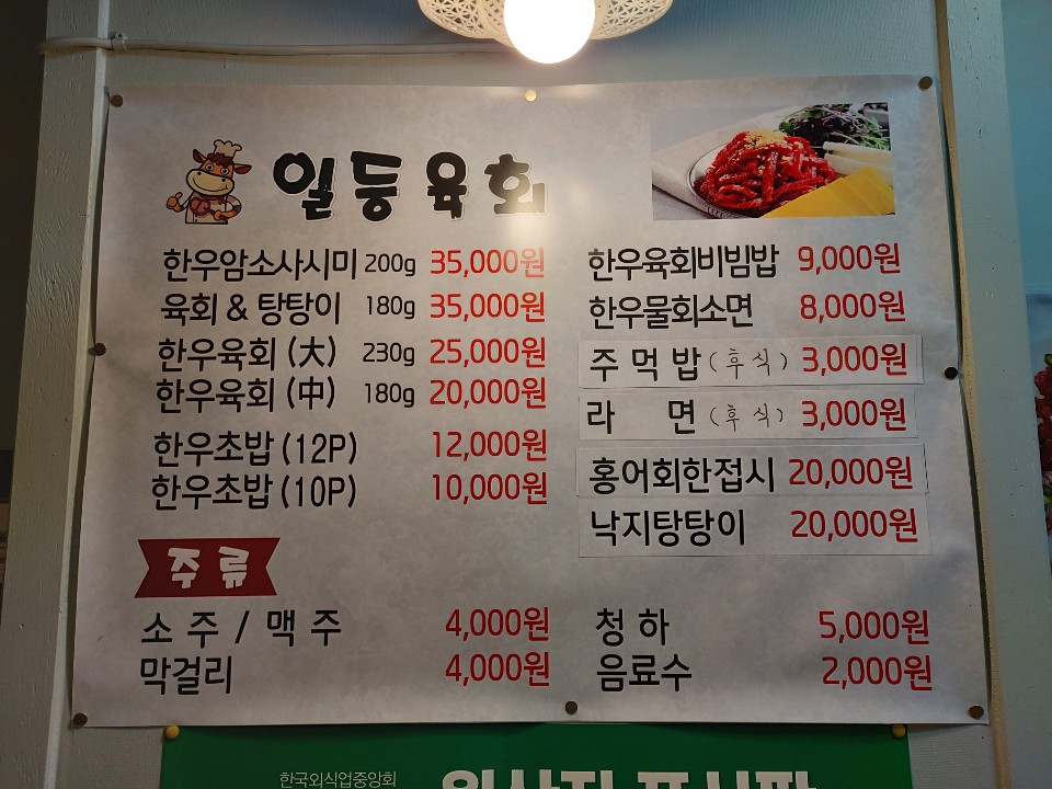 한우 육회 외에도 육사시미, 탕탕이, 홍어 등 막걸리와 잘 어울리는 귀한 안주들을 팔고 계셨어요.